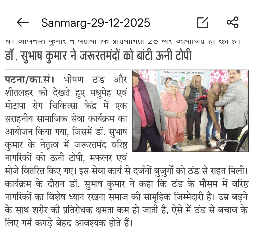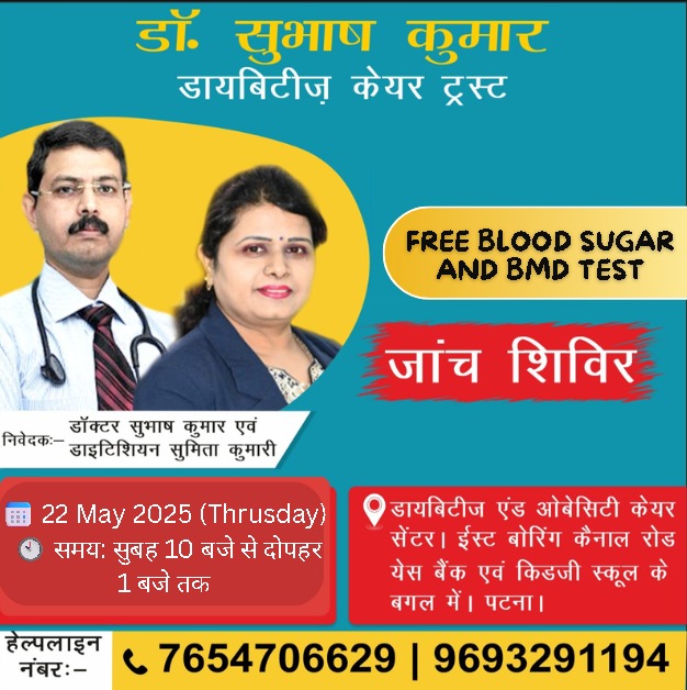 Diabetes & Obesity Care Center, Patna में एक ऐतिहासिक उपलब्धि दर्ज की गई है। बिहार का पहला इंसुलिन पंप सफलतापूर्वक इंस्टॉल किया गया, जिससे आधुनिक डायबिटीज मैनेजमेंट की दिशा में एक बड़ा कदम उठाया गया है।